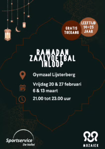 Vanaf de start van de Ramadan is elke vrijdagavond weer de zaalvoetbalinloop open! Ben je tussen de 14 en 23 jaar? Doe dan ook mee!